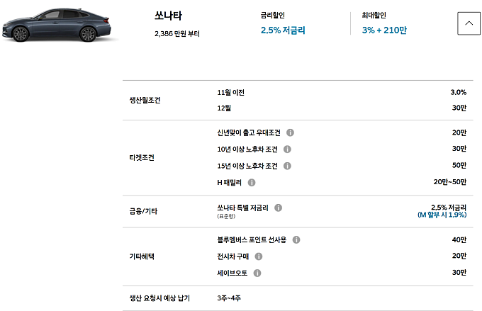 11월 이전 생산 3%, 12월 생산 30만원 할인이 들어가며