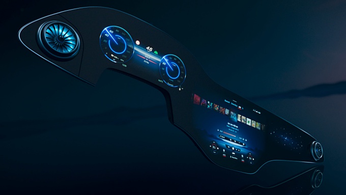 곡선형 유닛의 너비는 141cm (55.5 인치)이며 다기능 내장 카메라와 시간에 따라 화면의 밝기를 자동으로 조정하는 광 센서가 지원됩니다. 새로운 MBUX 인포테인먼트 시스템에는 일반 가정용 컴퓨터보다 6 배 많은 24GB RAM이 있습니다.