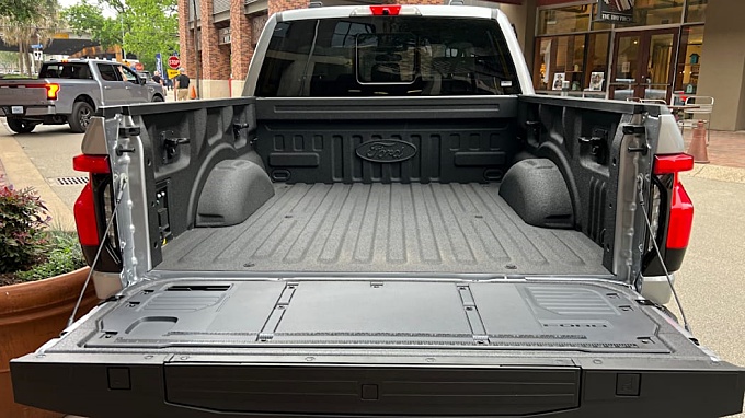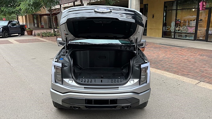 물론 전기 픽업 패키지에는 운전 경험보다 더 많은 이점이 있습니다. 전기 자동차 와 SUV 의 앞 트렁크 는 공간 낭비처럼 보이지만 실제로는 트럭에 큰 도움이 됩니다. 포드 F-150 라이트닝의 14.1입방피트 프렁크는 볼륨이 중형 세단 트렁크와 비슷합니다. 그것은 잠그는 침대 덮개의 필요성을 제거하기에 충분해야 하며 또한 ProPower Onboard를 사용하면 USB 및 USB-C 포트뿐만 아니라 4개의 120볼트 플러그도 있습니다.