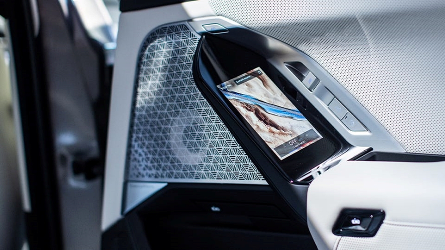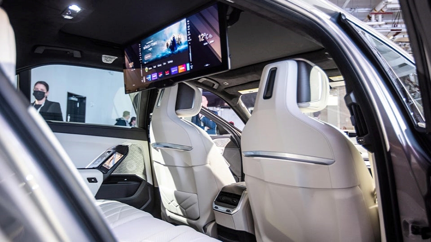 큰 화면은 BMW 7시리즈의 극장 모드와 연결되어 있습니다. BMW는 이렇게 설명합니다. "화면이 접히고 차양막이 올라가고 사운드 시스템이 작동하여 마치 자신의 개인 영화관에 있는 것과 같습니다." 극장 스크린용으로 라이브 스트리밍되는 넷플릭스나 아마존TV를 수신할 수 있는 5G 안테나가 있으며, 두 개의 레일 투 레일 지붕 유리 덮개용 모터가 지붕 양쪽 끝에 있어 깨끗한 유리 공간이 추가되었습니다.