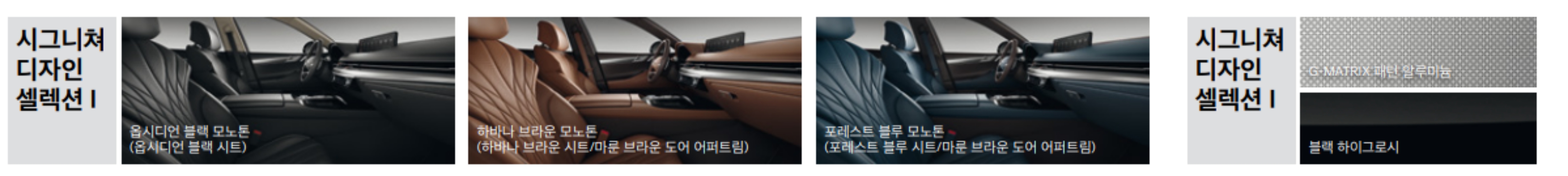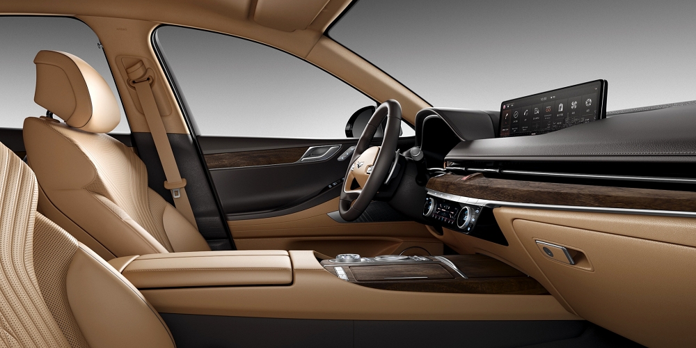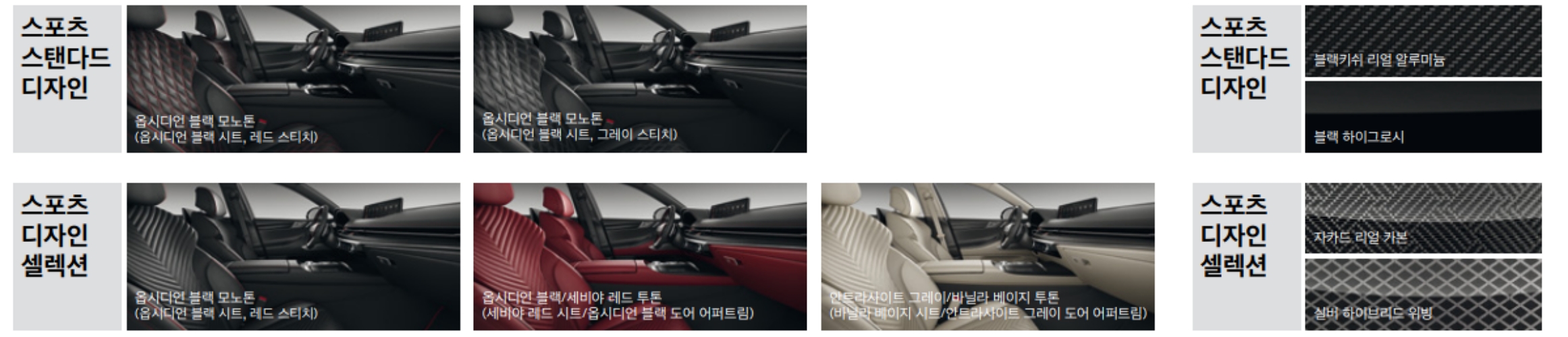 - 천연 가죽 시트(퀼팅, 파이핑 적용), G-MATRIX 패턴 알루미늄 내장재,