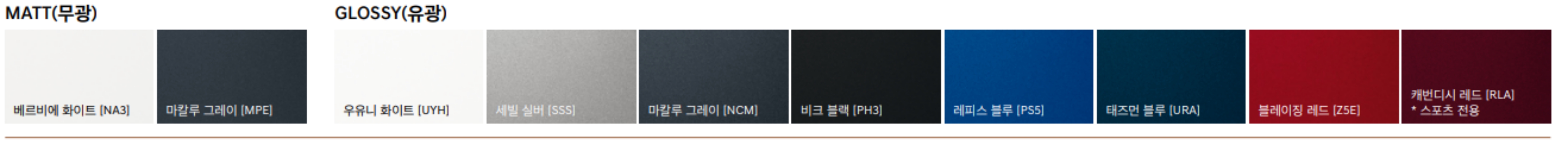 전륜 블랙도장 모노블럭(4P) 브레이크, 스포츠 내외장 포함(전용 천연