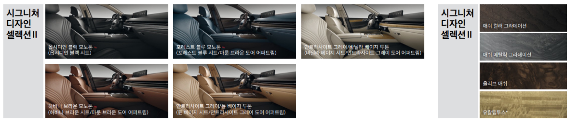 스티어링 휠 혼 커버), 오픈포어 리얼우드 내장재, 럭셔리 스웨이드 내장재(헤드라이닝,
