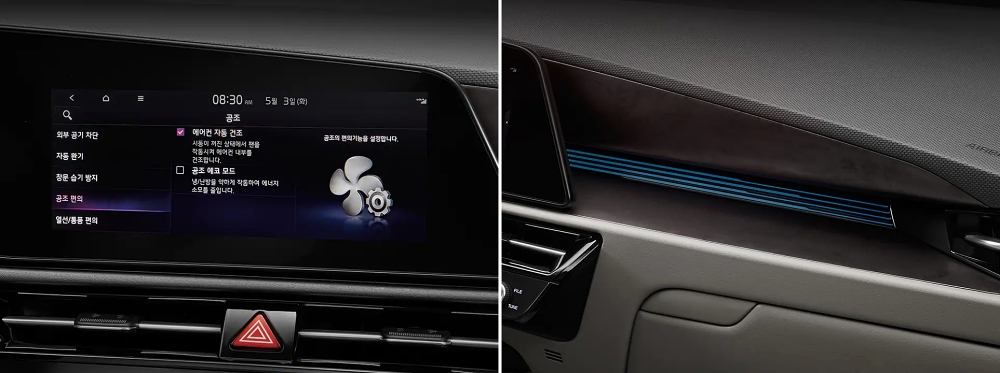 •내장 : 차콜 또는 라이트 그레이 투톤 인테리어 선택 가능,슈퍼비전 클러스터(10.25인치 칼라 TFT LCD/테마형 클러스터 기능 지원), 인조가죽 스티어링 휠, D/N 룸미러,선바이저(거울, 조명), 앰비언트 라이트, 블랙하이그로시 가니쉬(크래쉬패드, 1열 도어 센터트림),크롬 인사이드 도어핸들, 러기지 보드, 프론트 트렁크