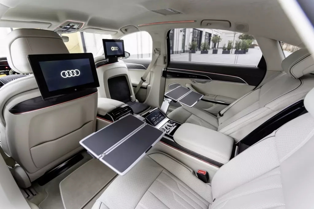 아우디 A8 60 TFSI을 운전하는 것은 사치품을 사랑하는 모든 사람들에게 거의 비 플러스 울트라입니다. 운전을 선호하는 사람들은 확장된 휠베이스와 뒤쪽에 안락 의자가 있는 A8 L을 선택할 수 있습니다. 전기적으로 조절이 가능하며 접이식 발판이 있습니다. 안마와 온열 기능이 있어 발이 찬다고 겁먹을 필요가 없습니다.