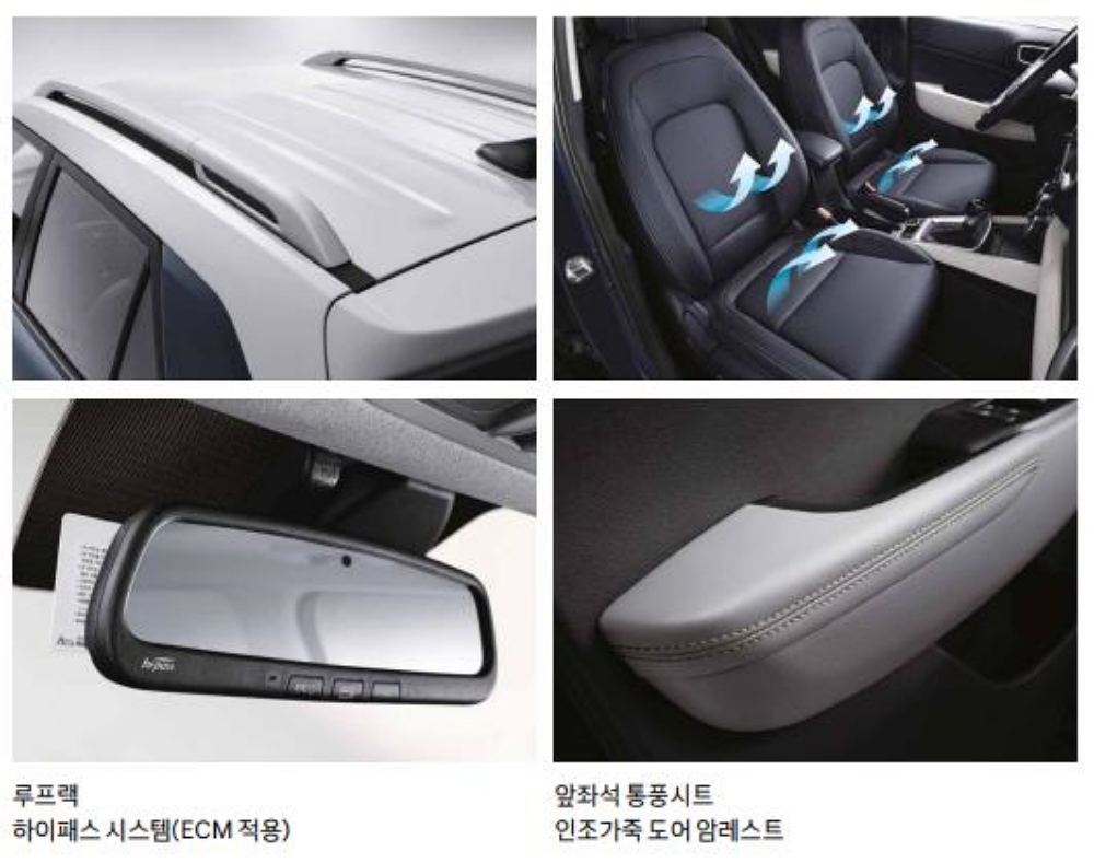 스타일 : LED 리어 콤비 램프, 17인치 알로이 휠 & 타이어, 인조가죽 적용내장(도어 암레스트), 루프랙