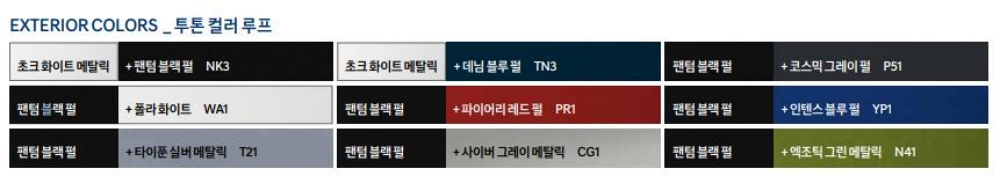 베뉴 색상은 원톤, 투톤 루프로 총 18가지의 색상을 선택할수 있습니다.