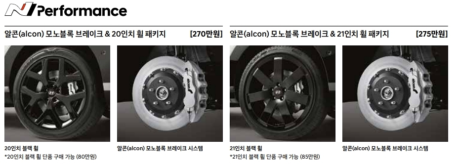 [N 퍼포먼스 파츠] 알콘(alcon) 모노블록 브레이크 & 21인치 휠 패키지 2,750,000