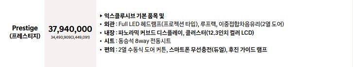 현대 싼타페 옵션 가격표 Prestige(프레스티지)