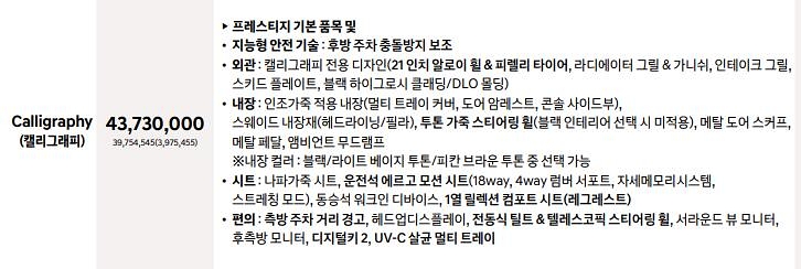 현대 싼타페 옵션 가격표 Calligraphy(캘리그래피)